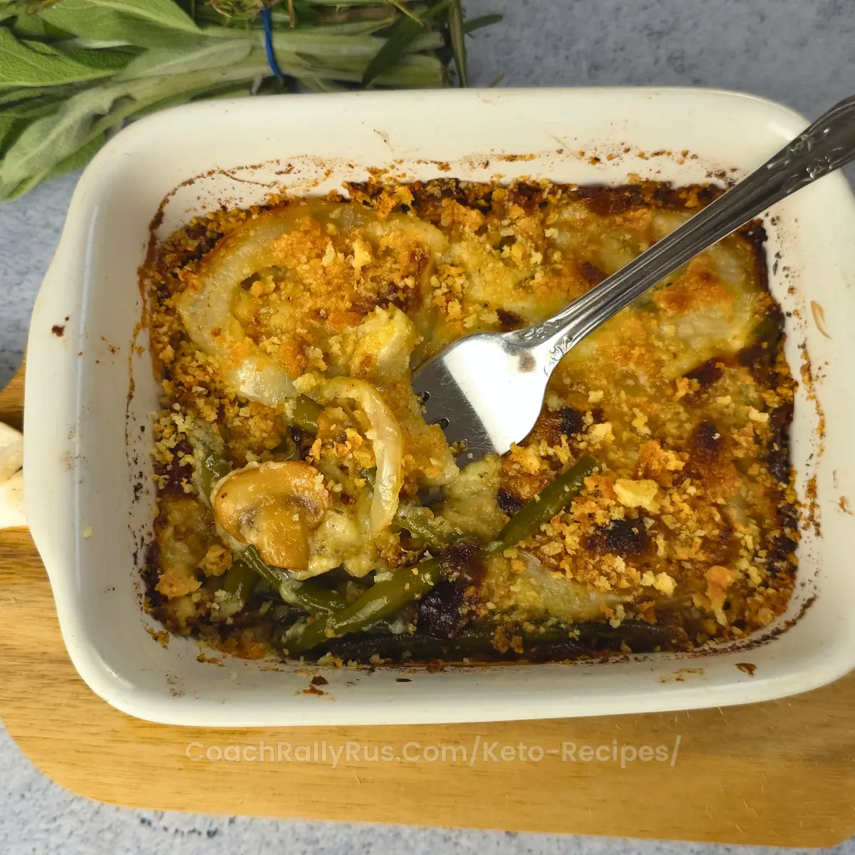 Enjoy the best green bean casserole as a quick, low-carb side dish with roasted chicken, grilled steak, or even on its own for a light lunch. Packed with protein and flavor, this classic holiday side dish, made low carb, is perfect for any time of year!