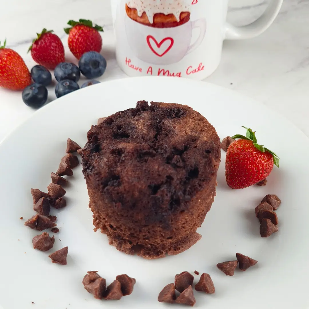 A: You can make this mug cake vegan or dairy-free by replacing the egg with a flax egg or a chia egg. To make a flax egg, mix 1 tablespoon of ground flaxseed with 3 tablespoons of water and let it sit for 10 minutes until it becomes gel-like. To make a chia egg, mix 1 tablespoon of chia seeds with 3 tablespoons of water and let it sit for 10 minutes until it becomes gel-like. Then, use the flax egg or the chia egg instead of the regular egg in the recipe. You can also use vegan or dairy-free chocolate chips if you want.