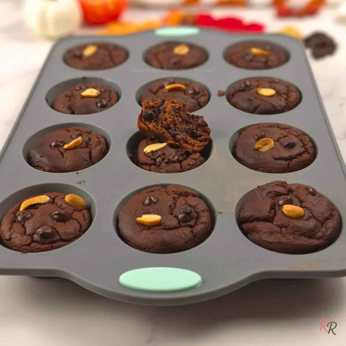 Keto Pumpkin Chocolate Peanut Butter Cottage Cheese Muffins
