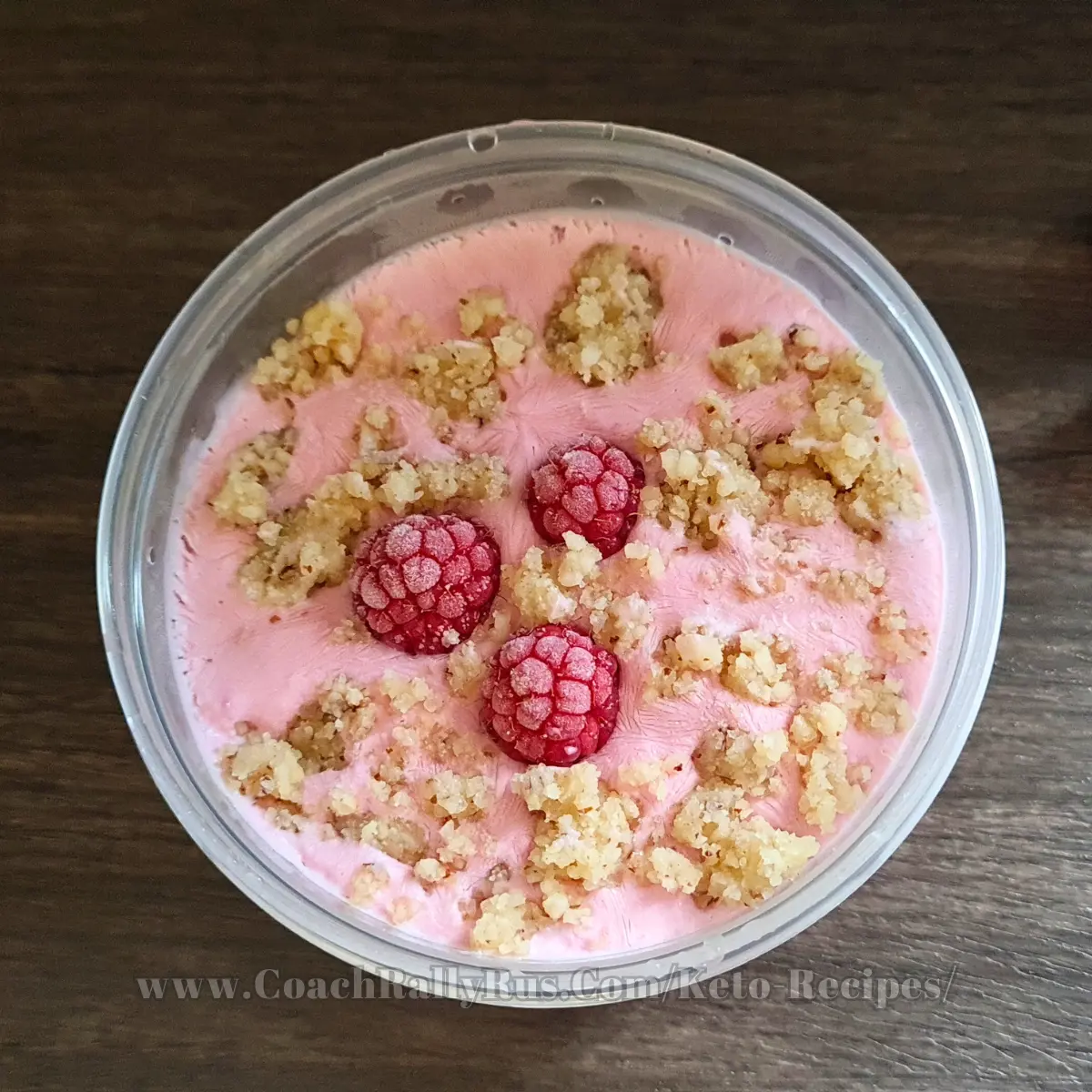 This keto raspberry cheesecake ice cream recipe is for a smooth and creamy, no churn ice cream that is also high protein, sugar free and low calorie. And for added flavor make the keto nut crumble and make it more of a cheesecake flavor. Each serving has just 96 calories, 2.5 grams of carbs and 5.5 grams of protein.